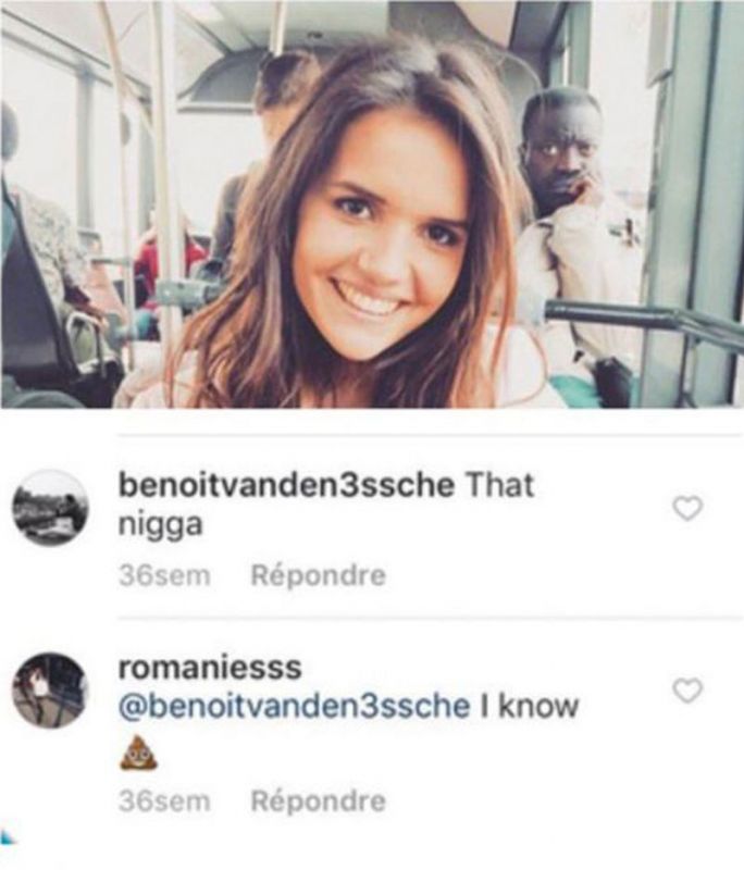 La modelo subió a su perfil una foto en un transporte público. Detrás de ella aparece un afrodescendiente. A los pocos minutos, una amiga escribió "That nigga" ("Ese negro") en los comentarios, y ella respondió: "I Know" ("Lo sé"), junto al emoji de un excremento.