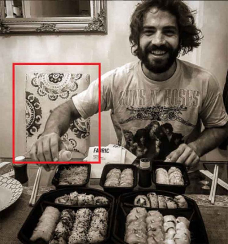 El particular tapizado de la casa de Candela que aparece tanto en su Instagram como en el del actor en una foto donde se lo ve comiendo sushi hace seis días, ¡y los mismos platos!