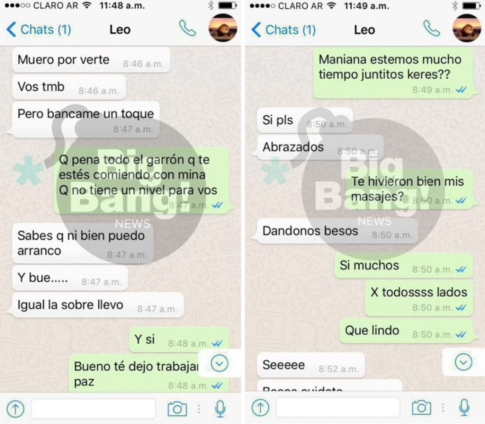 Los chats son demoledores. El empresario y la supuesta amante hablan sobre las ganas que tienen de verse. Él dice que "sobrelleva" la relación con Granata. Ella dice que la periodista "no está a su nivel".