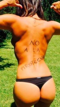 A pocas horas de la llegada de la Navidad se sumó a la campaña que se opone al uso de la pirotecnia. La actriz y bailarina, buscó llamar la atención con una foto hot de ella en topless, luciendo su escultural figura, con un escrito en su espalda que rezaba: "No a la pirotecnia".