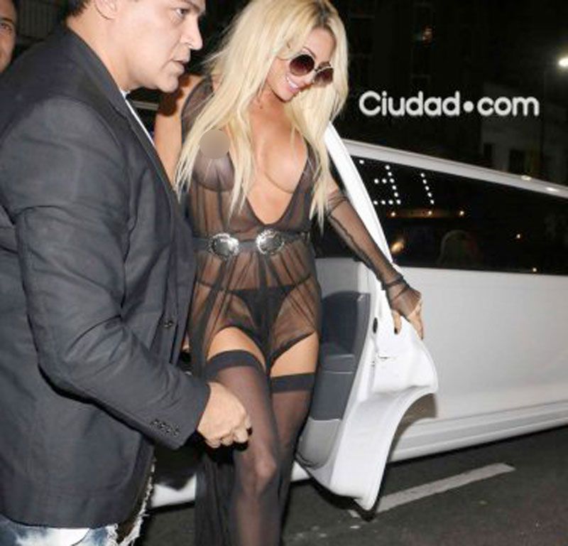 Con un vestido largo, totalmente transperente, sin ropa interior en la parte de arriba y con una micro tanga negra, la exuberante rubia lució sus curvas sin pudores y acaparó la atención de los presentes, incluidos los fotográfos, claro.