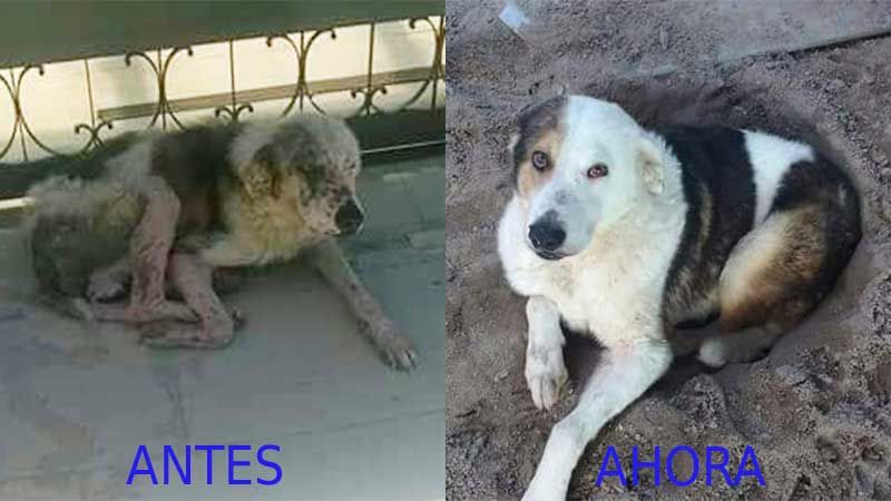 Unas manos bondadosa decidieron ayudarlo, esa noche le dieron tránsito, comida y un lugar donde dormir, a los días visitó el veterinario y comenzó su tratamiento.