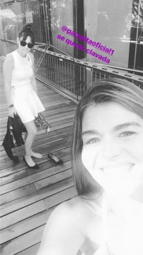 Fue Ángeles la que compartió una foto del accidente que sufrió Pampita, muy común entre las mujeres amantes de los taco aguja. "Pampita se quedó clavada" , escribió la ex Rebelde Way junto a una foto de la modelo y su zapato estancado entre dos maderas.