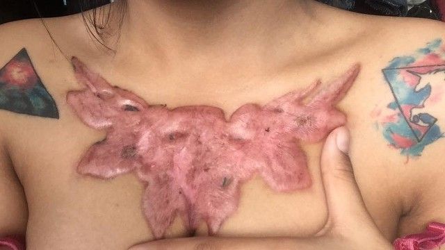 Una chica tailandesa mostró en su Facebook como quedó el tatuaje que tenía en su pecho tras haberlo intentado eliminar utilizando un producto químico.