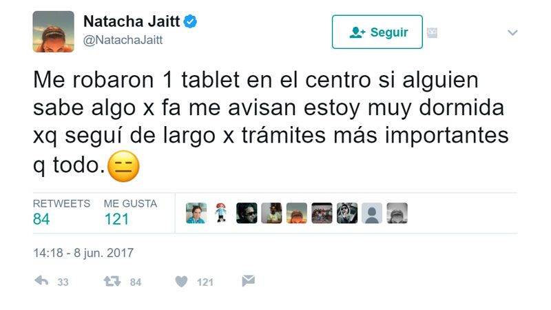 Días atrás, Natacha había contado en Twitter que le habían robado una tablet, por lo que se sospecha que de ahí se haya filtrado el material.