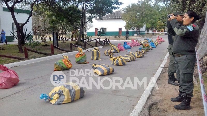 Pasada las doce del mediodía arribó el cargamento de droga al Móvil 5 de Gendarmería Nacional que había sido secuestrada en un campo del departamento Copo.
