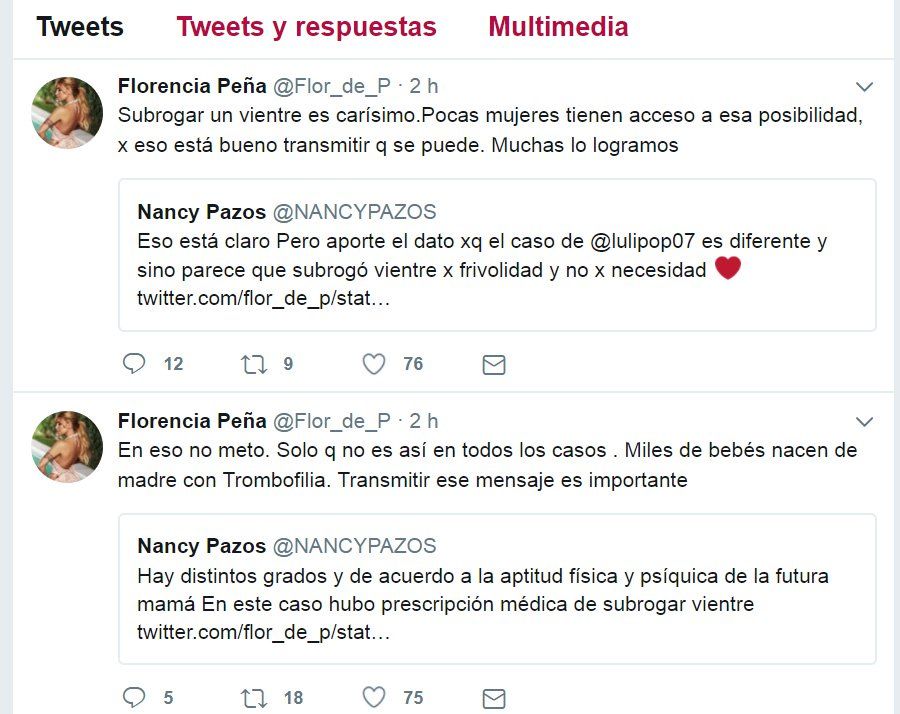 Florencia se mostró un tanto molesta por la vinculación que se hace con la trombofilia y el alquiler de vientres. Ante tanta desinformación, la actriz pidió no provocar miedos porque es una enfermedad que detectada y controlada a tiempo no trae consecuencias para el bebé.