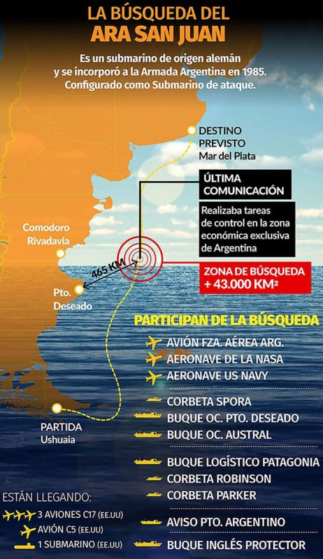 "Se ha hecho un barrido en el 80% de la superficie" donde podría localizarse el submarino sin resultados positivos, añadió, por lo cual aclaró que "no podemos descartar ninguna hipótesis". Asimismo, señaló que "la búsqueda submarina es mucho más complicada porque requiere el uso de medio con mucha tecnología, sonares y teléfonos subacqua".
