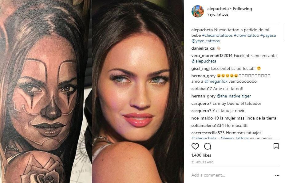 Ahora, Alejandro volvió a inspirarse en el mundo del espectáculo pero esta vez eligió a una figura de Hollywood que es un ícono sexual, así que no es tan extraño que la lleve en la piel. Se trata de Megan Fox, una de las mujeres más deseadas del mundo.