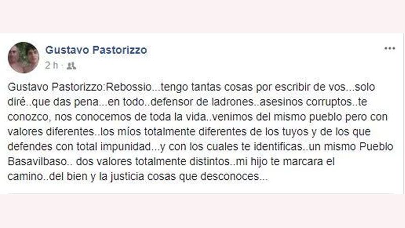 El papá de la víctima se descargó en Facebook: "Rebossio, tengo tantas cosas para escribir sobre vos. Sólo diré que das pena en todo. Sos defensor de corruptos, ladrones y asesinos. Nos conocemos de toda la vida. Venimos del mismo pueblo, Basavilbaso, pero tenemos valores diferentes".