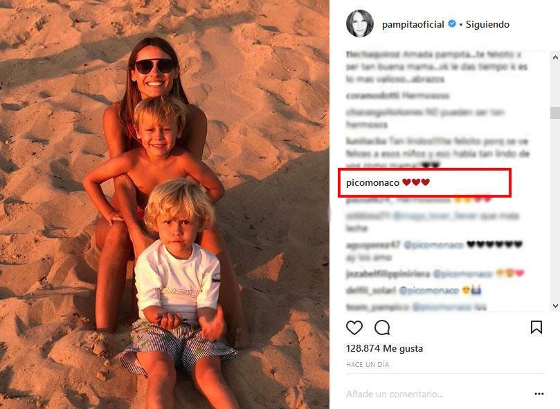 Uno de los comentarios llamó mucho la atención. Fue de Pico Mónaco, que lejos de mostrarse enojado o lejos de Pampita escribió un dulce mensaje. Posteó unos emojis de corazoncitos. ¡Un amor!