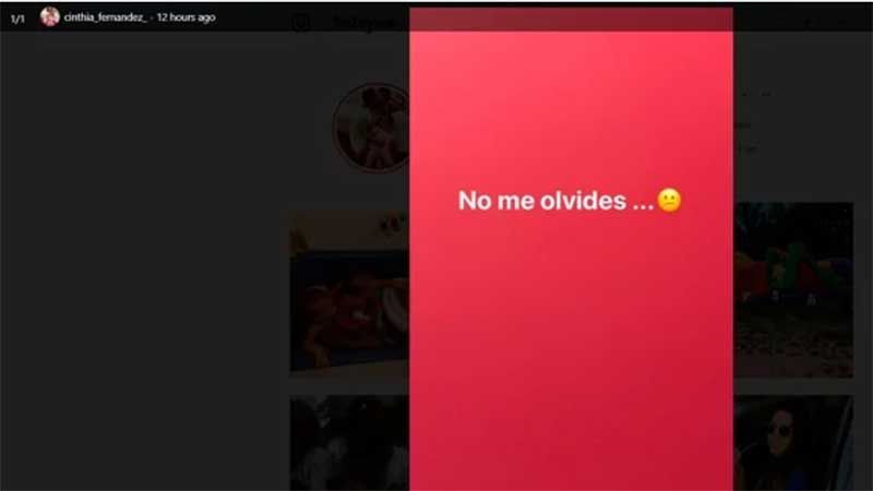 Sin embargo, las redes sociales también se convirtieron en un espacio para que Fernández haga catarsis y deje asomar sus sentimientos. En las últimas horas, Cinthia publicó en Instagram Stories un indirecto mensaje, que refleja su estado anímico. "No me olvides", escribió la integrante de Mahatma, junto al emoji de una carita triste. ¿Habrá sido un posteo para Defederico? Esperemos que el tiempo le devuelva la sonrisa.
