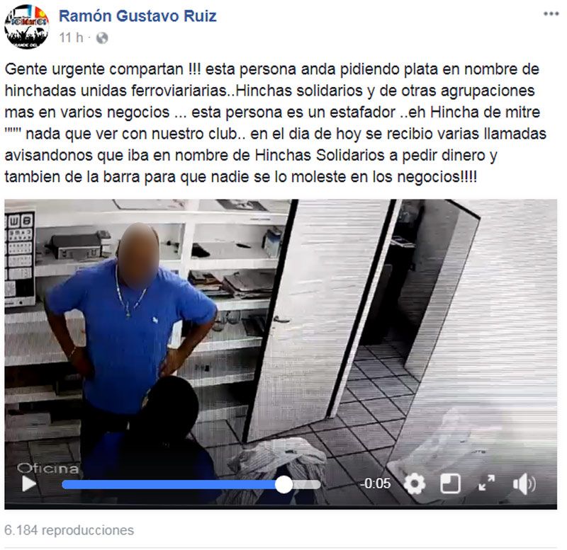 Los Hinchas Solidarios se mostraron indignados con la situación y le piden a la gente que tenga precaución con el accionar del sujeto.