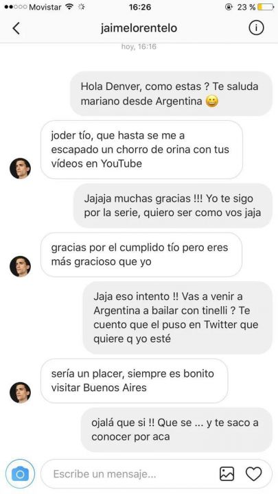 Mariano de la Canal, que se hizo conocido en los medios como el fan de Wanda Nara, aseguró el domingo que mantuvo una conversación privada por Instagram nada menos que con Jaime Lorente López, uno de los actores de La casa de papel, la serie del momento.