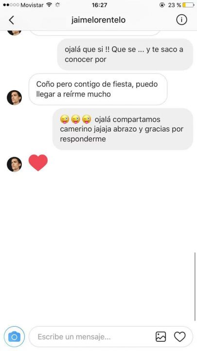 Ese chat pertenece a una cuenta falsa! No he tenido nunca esa conversación. Un abrazo enorme a todos!