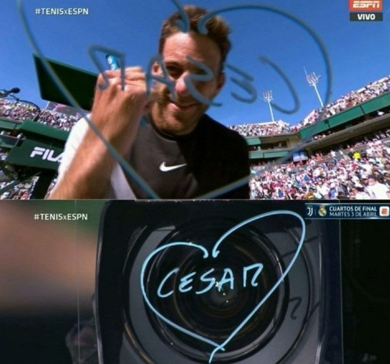 Juan Martín Del Potro gritó campeón en Indian Wells al derrotar a Roger Federer en una gran final por 6-4, 6-7 (8-10) y 7-6 (7-2). Al termino del partido, el argentino le dedicó la victoria a su mejor amigo, su perro César.