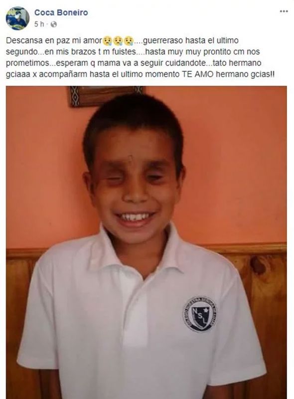 "Descansá en paz, mi amor… Guerrerazo hasta el último segundo… Te me fuiste en mis brazos… Hasta muy, muy prontito como nos prometimos… Esperame que mamá va a seguir cuidándote… Tato, hermano, gracias por acompañarme hasta el último momento. Te amo, hermano. ¡¡Gracias!!".