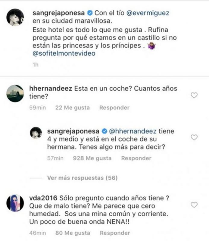 Como lo hacen últimamente varias famosas, la China suele responder a las críticas de sus fotos en Instagram y, esta vez, salió con los tapones de punta: es que un seguidor le consultó sobre una imagen donde se la veía a Rufina – de espaldas - y sobre un cochecito.