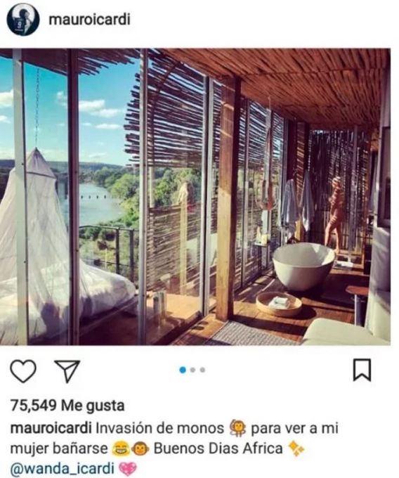 Primero Mauro lanzó el primer chiste en las redes sociales y se encargó de escrachar a la modelo desnuda mientras se bañaba. Esta imagen la compartió a través de su cuenta de Instagram y quedó publicada sin ningún filtro. "Invasión de momnos para ver a mi mujer bañarse", expresó entre risas el futbolista del Inter.