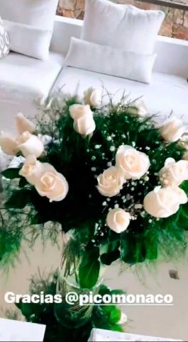 Con el corazón contento, la modelo dejó asomar que su noviazgo marcha viento en popa en Instagram, al publicar un tierno obsequio que le hizo el extenista: un enorme y bello ramos de rosas blanco. "Gracias @picomonaco", escribió Carolina junto a un video del arreglo floral.