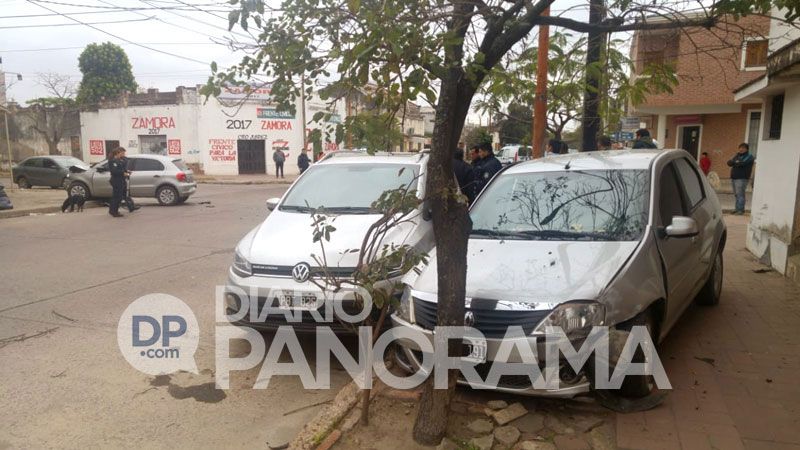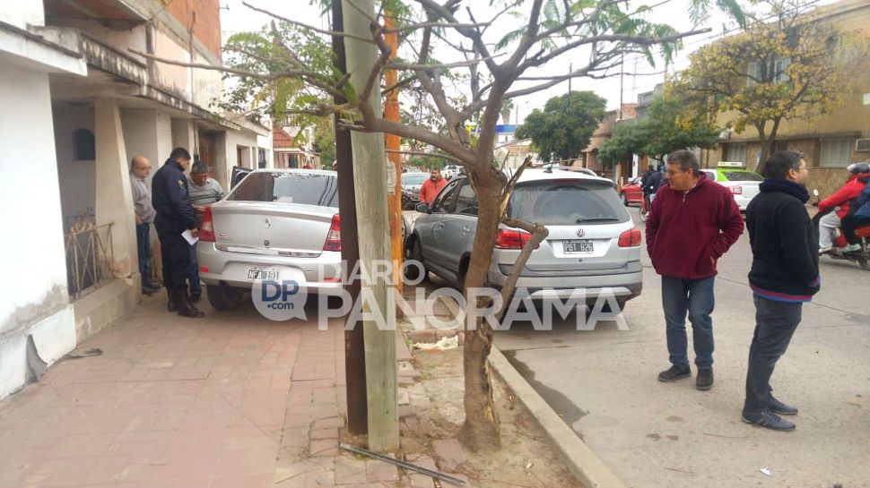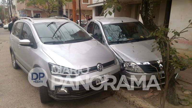 Tras el fuerte golpe el Gol realiza un trompo y el Logan sube a la vereda embistiendo a su vez a la Volkswagen Suram que estaba estacionada.