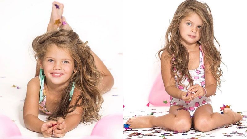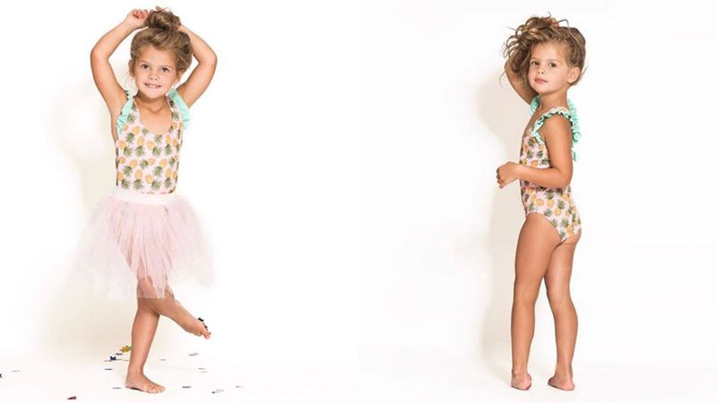 Con tan solo tres años, Francesca Icardi realizó una campaña de indumentaria infantil para la cual jugó a posar en traje de baño.