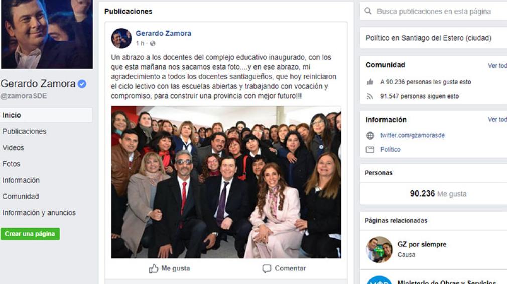 Eso motivó más tarde que el mandatario santiagueño publicara en su perfil de la red social Facebook un agradacimiento a los profesionales de la educación, que hoy reiniciaron las actividades.