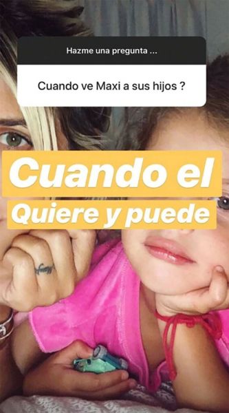 Días atrás, de paso por Buenos Aires tras la polémica por sus fotos al natural, la hermana de Zaira Nara decidió responder preguntas en su cuenta de Instagram. Una consulta en particular de unos de sus seguidores fue sobre el padre de sus tres hijos varones: "¿Cuándo ve a sus hijos?". "Cuando él quiere y puede", contestó la empresaria. Pero de inmediato pareció confirmar que, sin embargo, todo marcha de manera armónica. "¿Te llevas bien con tu ex marido?", indagó otro seguidor. "Sí, re", escribió Wanda. Minutos después borró ambas consultas.