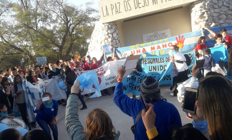 Bajo el lema “Salvemos las dos vidas” y con los pañuelos celestes que representan a este sector, se congregaron en Plaza Libertad a las 16 horas para de allí, marchar hasta el Cristo Redentor. Algo similar sucedió en algunas localidades del interior.