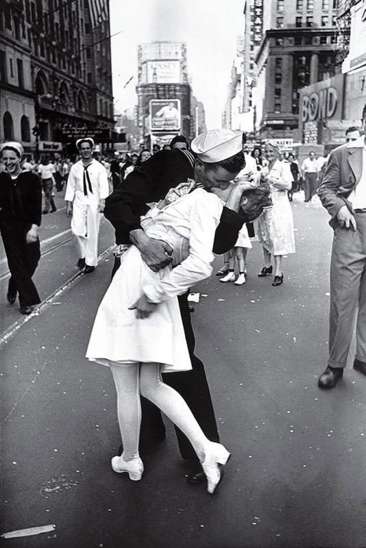 No es un momento cualquiera, se trata del día en el que se conoce la noticia de la rendición de Japón, con lo que se da fin a la Segunda Guerra Mundial y el autor de aquel retrato memorable de agosto de 1945 es el fotógrafo Alfred Eisenstaedt.