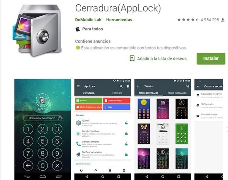 Por otra parte cuenta con la opción "cámara secreta" que le saca fotos a los intrusos que detecte que intenten ingresar al sistema protegido.