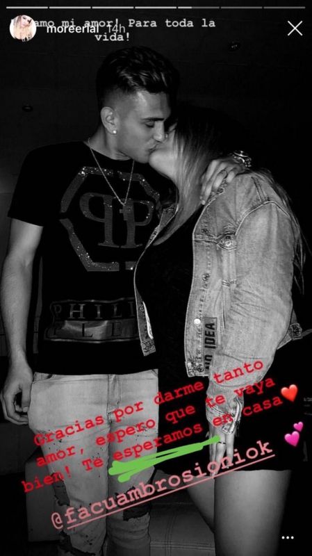 "Te amo mi amor! Para toda la vida. Gracias por darme tanto amor, espero que te vaya bien! Te esperamos en casa", escribió la joven a su novio, Facundo Ambrosioni.