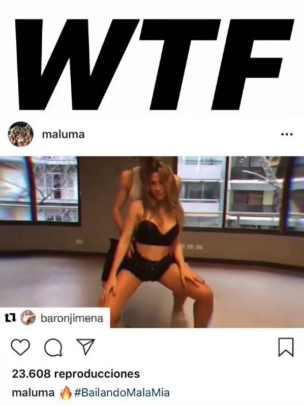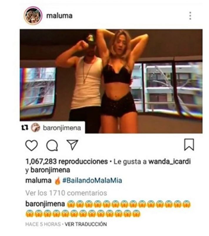 Unas horas después del sensual baile que compartió la escultural actriz, fue el propio Maluma quien replicó el video de Barón: “Bailando Mala Mía”, escribió el cantante de "Felices los 4" y "Borro cassette" y sumó un emoticón de un fuego. Vale recordar que el colombiano cuenta con más de 35 millones de seguidores en Instagram.