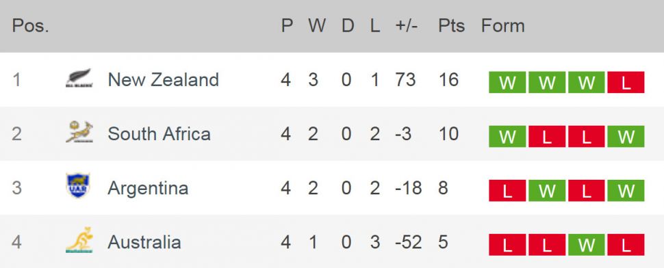 El equipo de Ledesma quedó con ocho puntos, tercero en la tabla. All Blacks lidera con 16, Sudáfrica tiene 10 y los Wallabies, cinco.