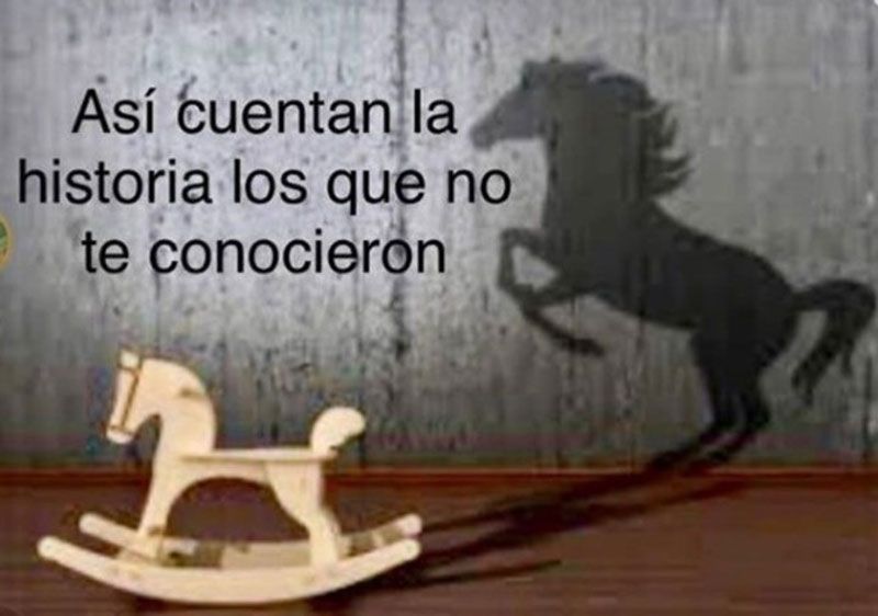 Pero eso no fue todo. Es que, además, el joven ídolo cuartetero también compartió en otro posteo un collage de un caballito de madera, en cuya sombra se refleja un enorme equino, y a su lado dice: "Así cuentan la historia los que no te conocieron".