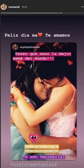 Usuaria activa en las redes sociales, Morena intercambió fuertes y emotivos mensajes con Mariana “Loly” Antoniale, quien supo ser pareja de su padre. “¡¡¡Deseo que seas la mejor mamá del mundo!!!”, le escribió la modelo, en una foto que compartió en sus historias de Instagram.