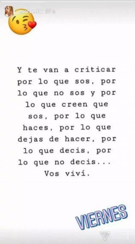 En las últimas horas, la futura mamá publicó un sugestivo mensaje, que muchos usuarios interpretaban que estaba dirigido a la figura de América. "Y te van a criticar por lo que sos, por lo que no sos y por lo que creen que sos, por lo que hacés, por lo que dejas de hacer, por lo que decís, por lo que no decís… Vos viví”, escribió.