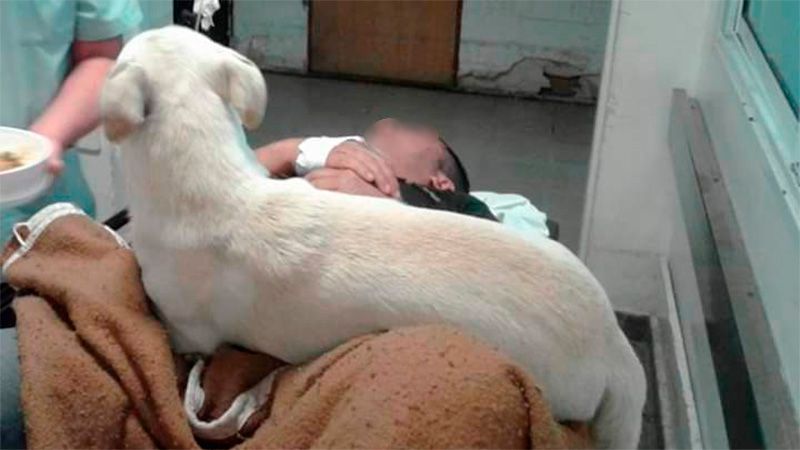 Tras la viralización de las conmovedoras imágenes difundidas por Reporte 100.7 de Paraná, se difundió la foto del perrito sobre la camilla de su amigo.