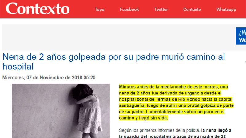 El aberrante hecho se registró en la ciudad de Termas de Río Hondo. La nena de 2 años murió cuando era trasladada al Cepsi por las graves heridas que había sufrido.