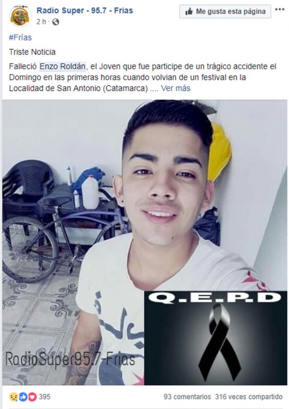 Un accidente automovilístico se cobró la vida de dos jóvenes de Frías, enlutando a toda la ciudad. Estrella Olivares Barrios (23) murió en el acto, mientras que Enzo Roldán (19) falleció tras luchar durante más de un día en el hospital.