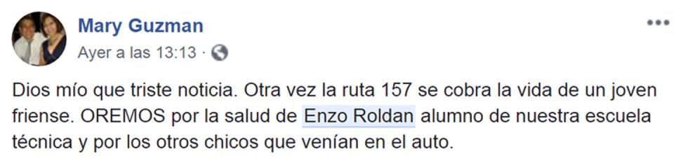 El siniestro fatal causó conmoción en la comunidad friense. Algunos familiares y amigos de Estrella y Enzo expresaron su tristeza y dolor en las redes sociales, y publicaron mensajes de despedida.