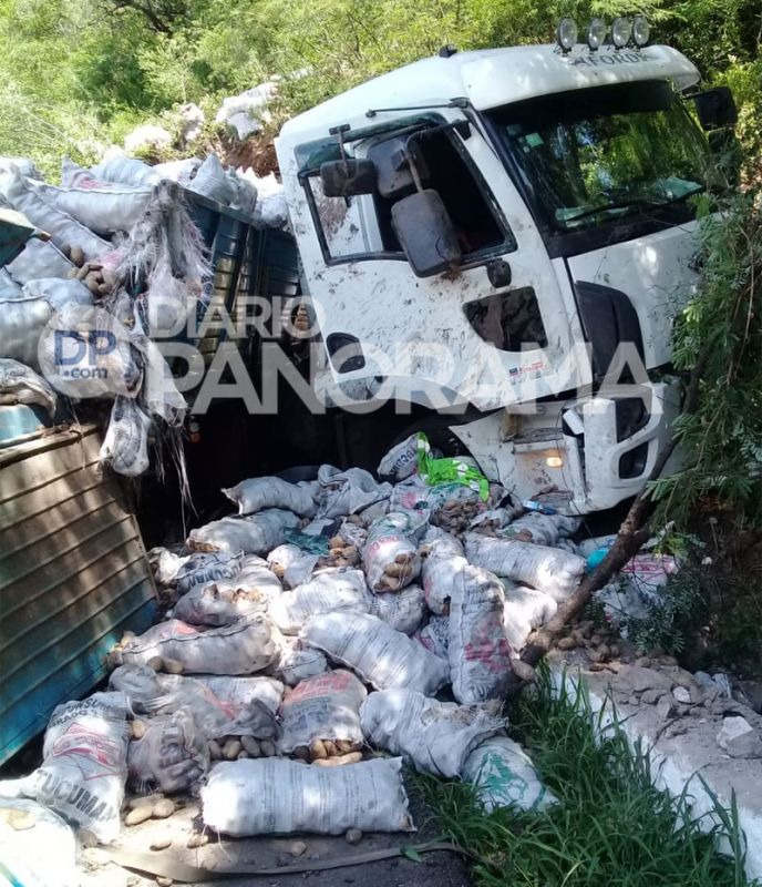 Un camión perdió la carga de papa que transportaba al volcar en la zona de Los Cerrillos en las Sierras de Guasayán.