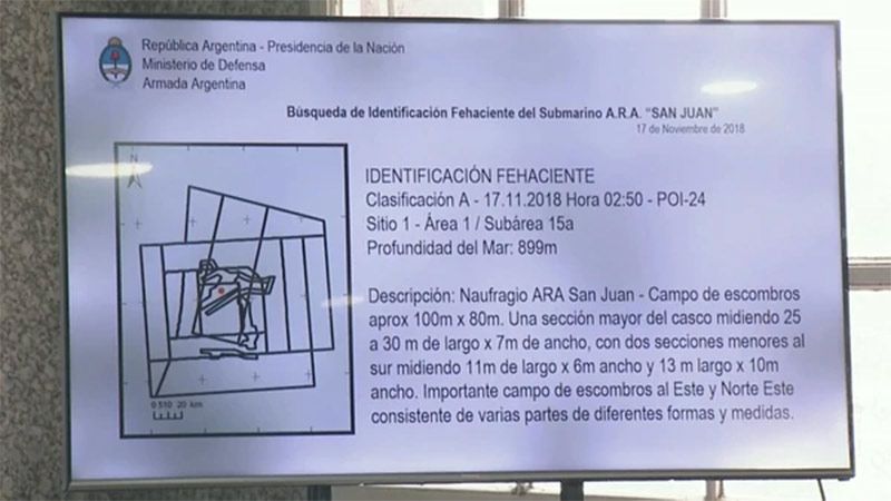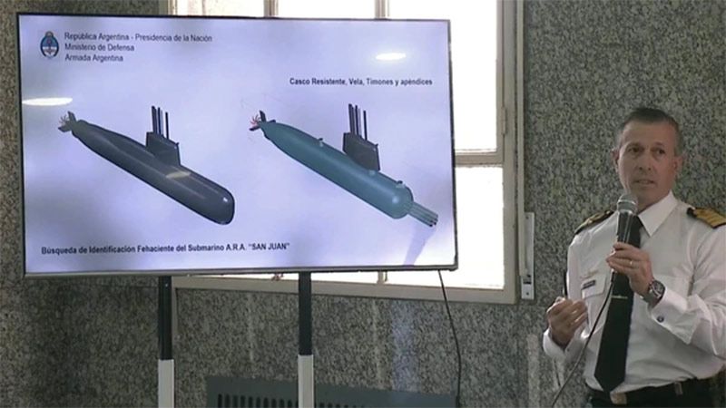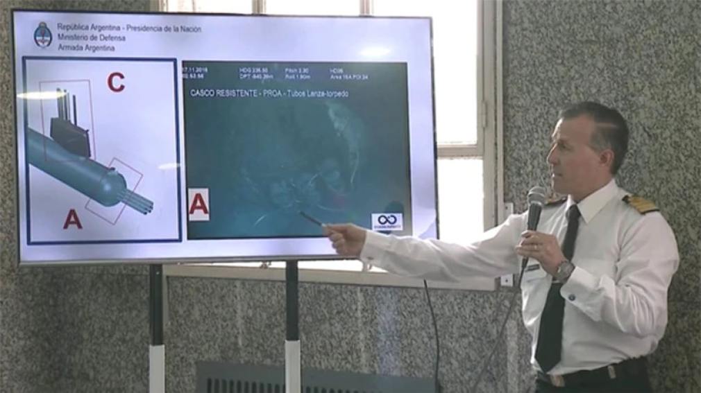 Antes de hacer públicas las fotos en la conferencia de prensa, fueron compartidas a los familiares de las 44 tripulantes del submarino en la Base Naval de Mar del Plata.