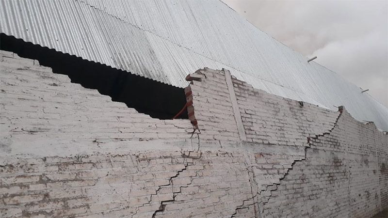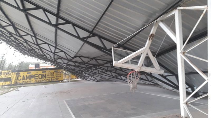 El viento hizo volar el techo del tinglado de uno de los clubes más representativos de la provincia. Mirá las fotos.