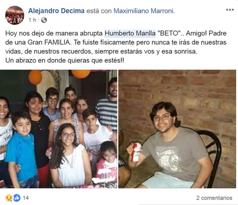 "Beto" -como le decían- tenía una hermosa y gran familia, integrada por su esposa y seis hijos, cuatro varones y dos mujeres. Trabajaba como carnicero en un autoservicio.