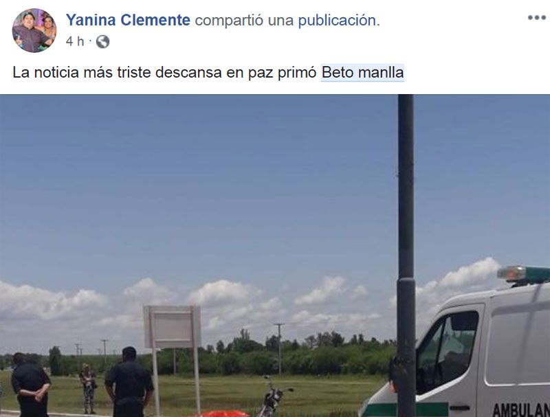 Humberto Manlla falleció este viernes al mediodía al derrapar con su moto sobre la avenida Costanera en Termas de Río Hondo.