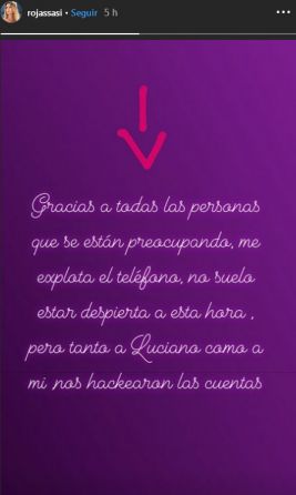 Una inesperada publicación movilizó el mundo de las redes sociales durante las últimas horas navideñas. En la cuenta de Sabrina Rojas apareció este 25 de diciembre una serie de historias en Instagram que anticipaba una fuerte denuncia en la que le sacaría "la careta" a un hombre, a quien tildaba de "psicópata, violento y drogadicto". Horas después, la propia modelo se encargó de aclarar que fue hackeada junto a su marido Luciano Castro.