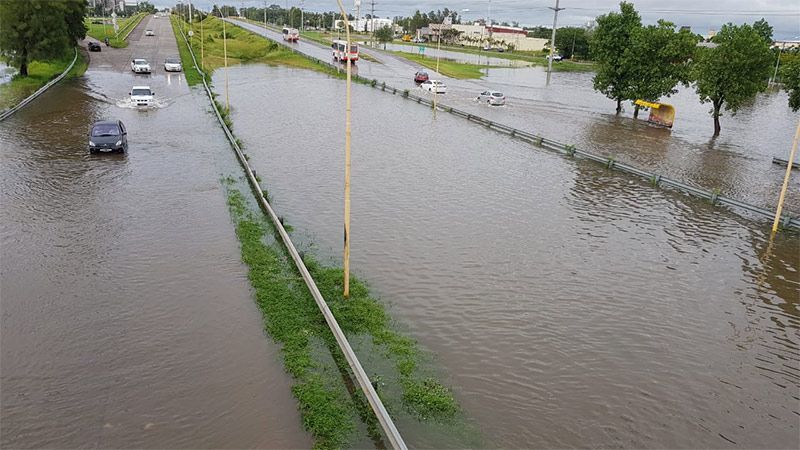 Las fuertes lluvias de la noche del miércoles y madrugada de este jueves, provocaron serios inconvenientes en esa arteria tan transitada.