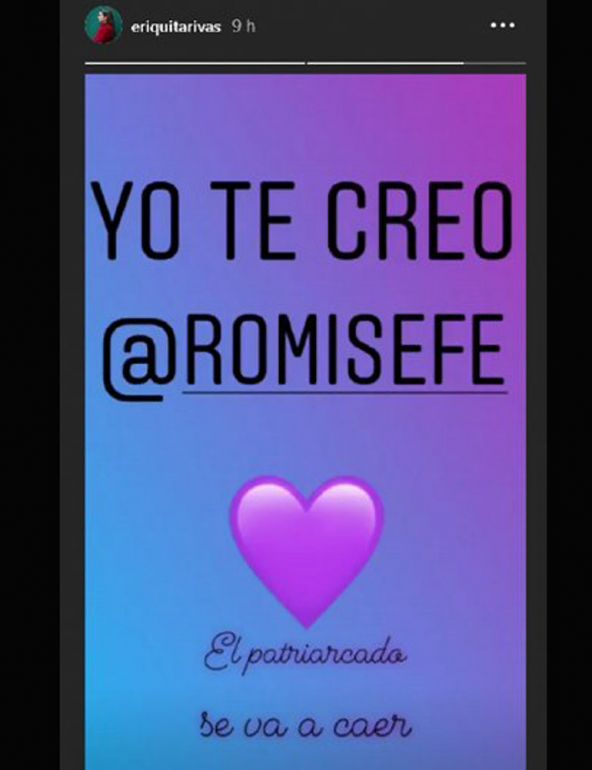 Darín aseguró que “ninguna de las dos historias es cierta”, versión que fue ratificada por su hijo, Chino Darín. En las últimas horas, la modelo obtuvo el apoyo de Érica Rivas. A través de Instagram Stories, la actriz publicó: “Yo te creo Romina Seferian. El patriarcado se va a caer”.