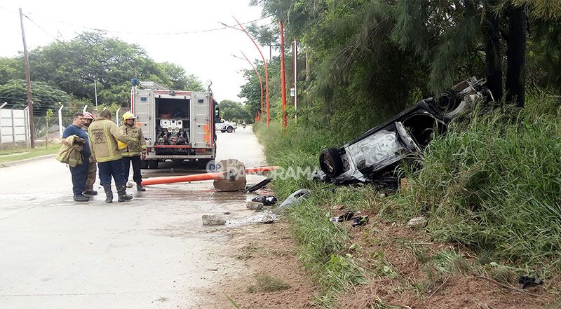 En la mañana de este domingo, por causas que se investigan, un automóvil chocó una columna y luego volcó de manera violenta en calle Dr. Víctor Alcorta del barrio Independencia, al sur de la Capital.